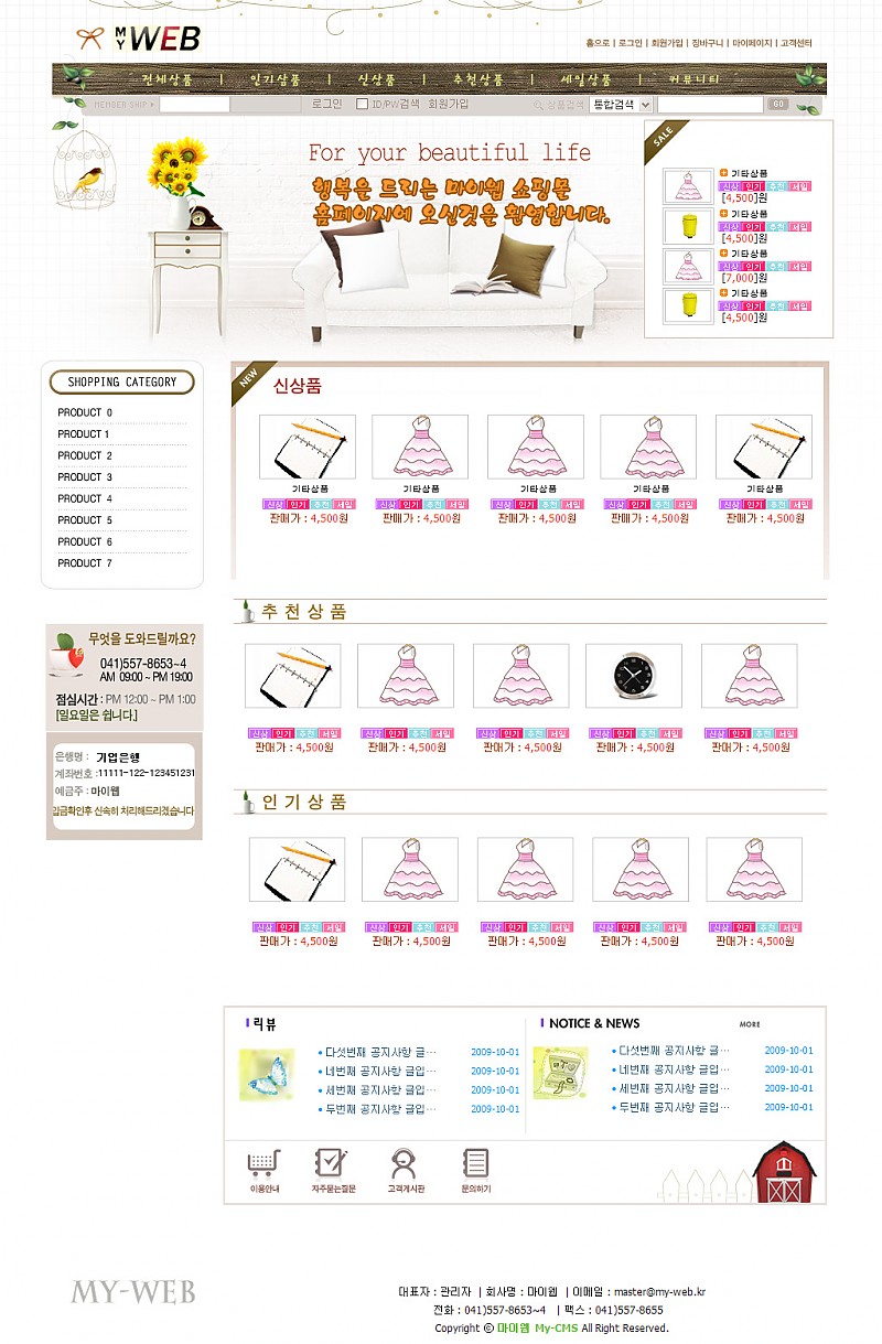Home 쇼핑몰홈페이지 저가형쇼핑몰샘플