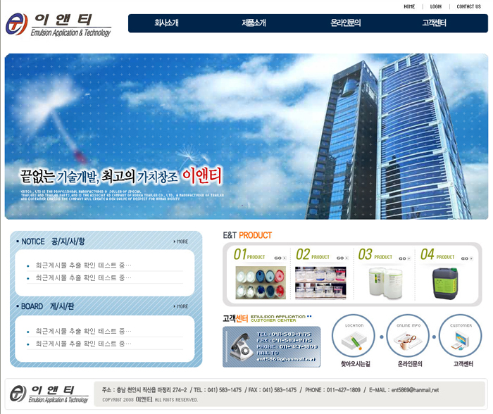 이앤티 홈페이지 > 홈페이지