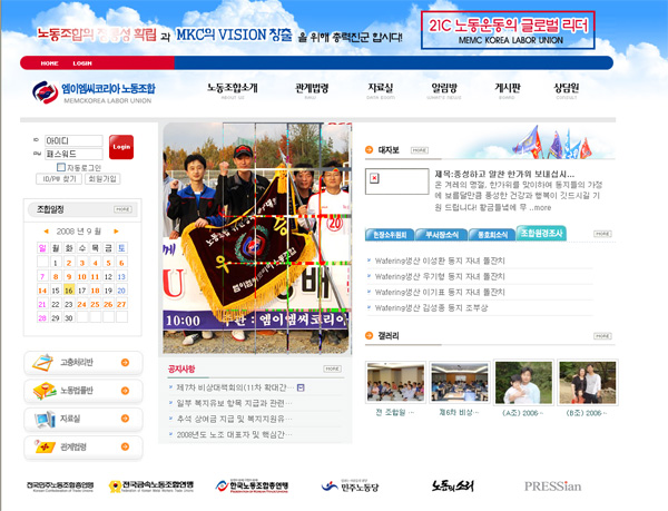 엠이엠씨코리아 노동조합 홈페이지 > 홈페이지